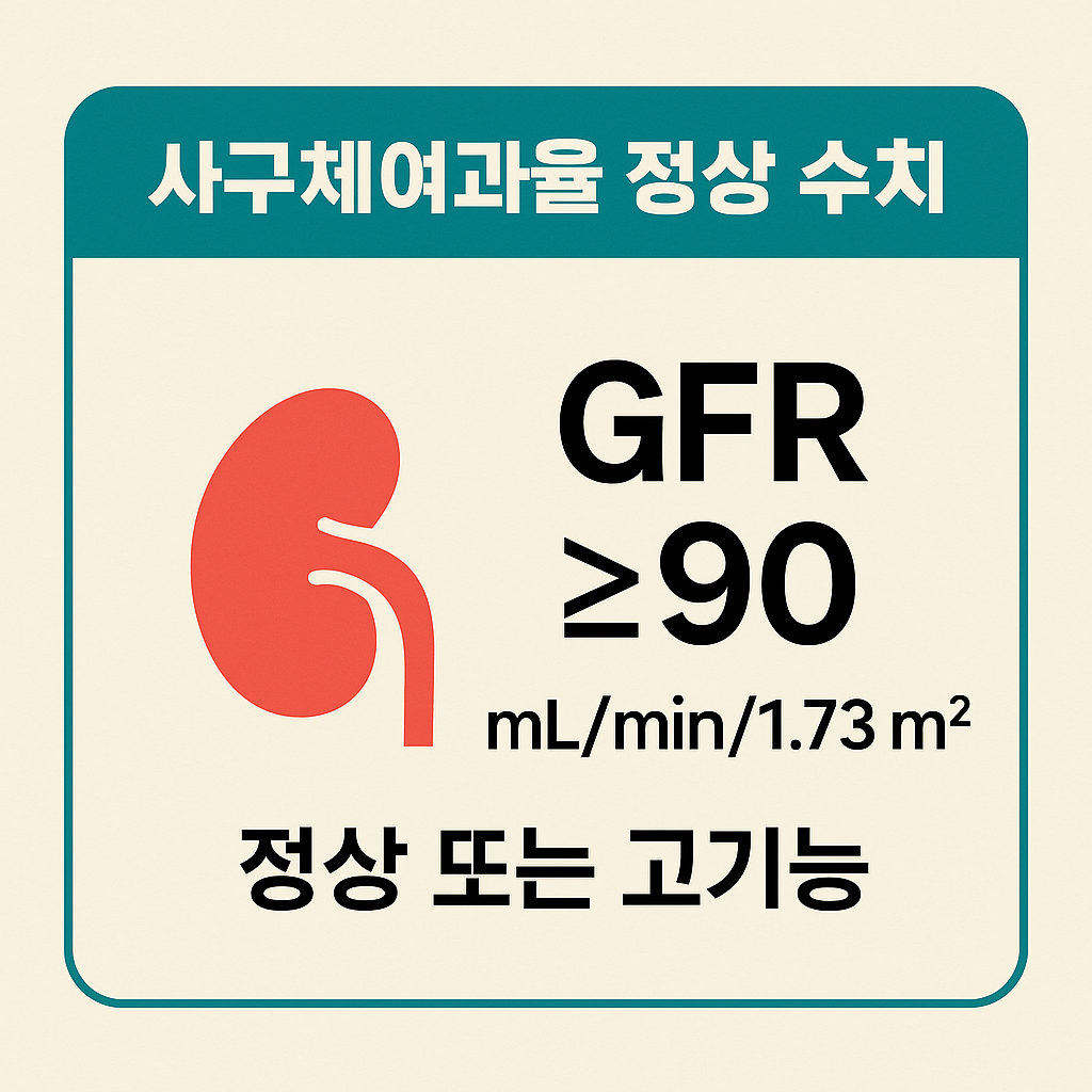 목차1.사구체여과율(GFR) 개요2.정상 수치 기준3.사구체여과율 검사 방법4.정상 수치에서 벗어나는 원인5.수치별 신장 건강 단계6.정상 수치 유지를 위한 생활 관리7.자주 묻는 질문(FAQ)1.사구체여과율(GFR) 개요사구체여과율의 정의사구체여과율(GFR)은 신장이 1분 동안 걸러주는 혈액의 양을 뜻해요. 신장의 아주 작은 필터인 사구체를 통해 혈액이 여과되어 얼마나 깨끗해지는지를 나타내죠.눈에 보이지 않아도, 하루 종일 신장은 약 120~180리터의 혈액을 여과해요.복잡한 직접 측정 대신, 크레아티닌 농도와 나이, 성별, 체중 등을 사용하는 eGFR(추정 사구체여과율)을 계산해 신장 기능을 쉽게 알아보는 방법이 일반적이에요.신장 기능과의 관계GFR은 신장 기능을 평가하는 가장 중요한 지표예요. 수치..