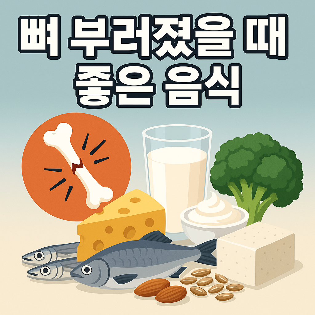 목차1.뼈 부러졌을 때 음식의 중요성2.뼈 건강에 좋은 주요 영양소3.뼈 회복에 좋은 음식4.뼈 회복을 돕는 특별 식품5.피해야 할 음식6.뼈 회복을 위한 생활 습관 팁7.결론1.뼈 부러졌을 때 음식의 중요성뼈 회복과 영양소의 관계뼈가 부러지면 우리 몸은 새로운 뼈를 만들기 위해 여러 가지 영양소를 필요로 해요. 특히, 칼슘은 뼈를 구성하는 주재료이고, 비타민 D는 우리 몸이 칼슘을 잘 흡수하게 도와줘요. 균형 잡힌 식사를 통해 단백질, 마그네슘, 비타민 K, 비타민 C 등도 충분히 섭취해야 회복이 더 잘된답니다 .단백질은 뼈를 만드는 세포를 만드는 재료예요. 콜라겐 같은 뼈의 ‘뼈대’를 만드는 데 꼭 필요하고, 비타민 C는 그 콜라겐을 만드는 데 도움을 줘요 .마그네슘은 칼슘이 몸 안에서 제대로 사용되..