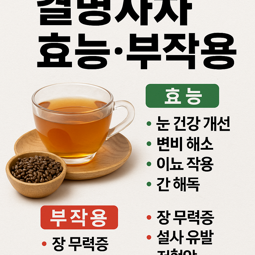 목차1. 결명자차란?2. 결명자차 주요 효능3. 결명자차의 부작용 및 주의사항4. 안전한 섭취 방법5. 결명자차 활용 팁6. 결명자차 자주 묻는 질문 (FAQ)1. 결명자차란?- 결명자의 정의와 유래결명자차는 한자로 ‘눈을 밝게 해주는 씨앗’이라는 뜻을 가진 결명자(決明子)로 끓여낸 차예요. 이름부터 눈 건강에 좋을 것 같지 않나요? 결명자는 사실 콩처럼 생긴 식물의 씨앗인데요, 우리가 흔히 '환삼덩굴'이나 '도둑놈의갈고리' 같은 풀처럼 마주치는 그런 종류가 아니라, 콩과에 속하는 '환삼결명(환삼결명자)'이라는 식물의 열매랍니다.이 씨앗은 겉모습만 보면 약간 납작한 밤콩 같이 생겼고, 색은 갈색이나 검은색을 띄어요. 겉은 단단하고 약간 매끄러워서, 만지면 구슬처럼 굴러갈 정도예요. 맛은 아주 강하지는 않..